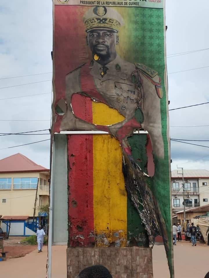 L’effigie du président de la transition guinéenne, le Général Mamadi Doumbouya se trouvant au rond-point Komarala Loisir, non loin de la station de Amadou Yes, vient d’être incendiée par un individu sorti de nulle part. Selon les informations recueillies auprès des citoyens présents sur place, l’individu serait venu à bord d’une moto puis muni d’essence avant incendier l’effigie dans la soirée de ce samedi 7 septembre 2024. Dans le feu l’action, l’individu a été immediatement mis aux arrêts par les services de sécurité avant d’être conduit à un lieu inconnu.