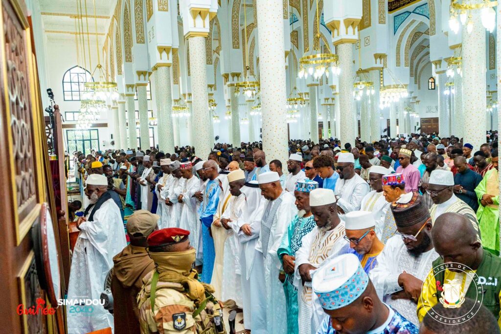 À Conakry, la grande mosquée Fayçal a accueilli le Premier ministre Amadou Oury Bah et plusieurs membres du gouvernement. L’imam Elhadj Mamadou Saliou Camara a insisté sur la nécessité de conjuguer foi et travail, rappelant que « l’islam est une religion parfaite, même s’il n’existe pas de musulman parfait ». Le Premier ministre a, quant à lui, adressé un message d’espoir et de fraternité, appelant à prier pour la paix dans un monde en proie à l’instabilité.